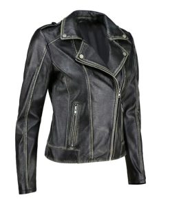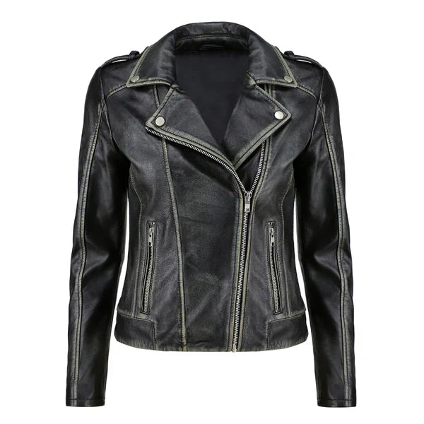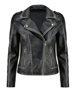 Women’s Black Handwaxed Zip-Up Moto Leather Jacket