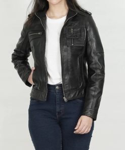 Women’s Black Moto Leather Jacket – Classic Biker Style