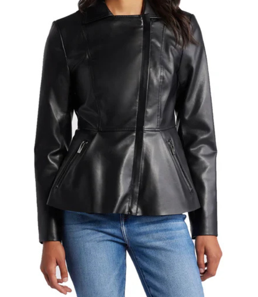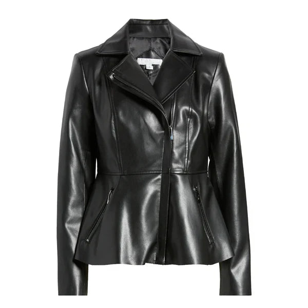 Women’s Black Peplum Moto Leather Jacket