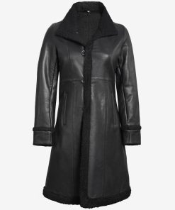Women’s Black Shearling Long Leather Coat