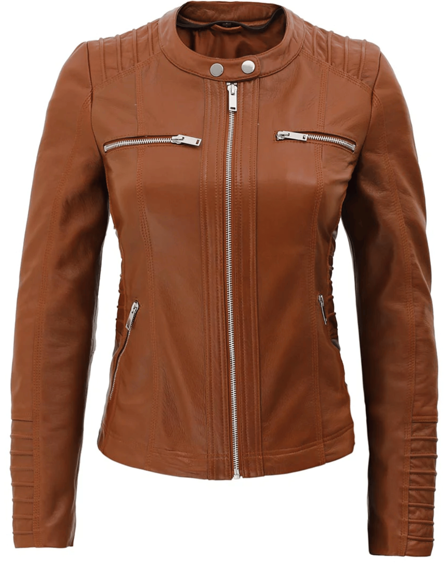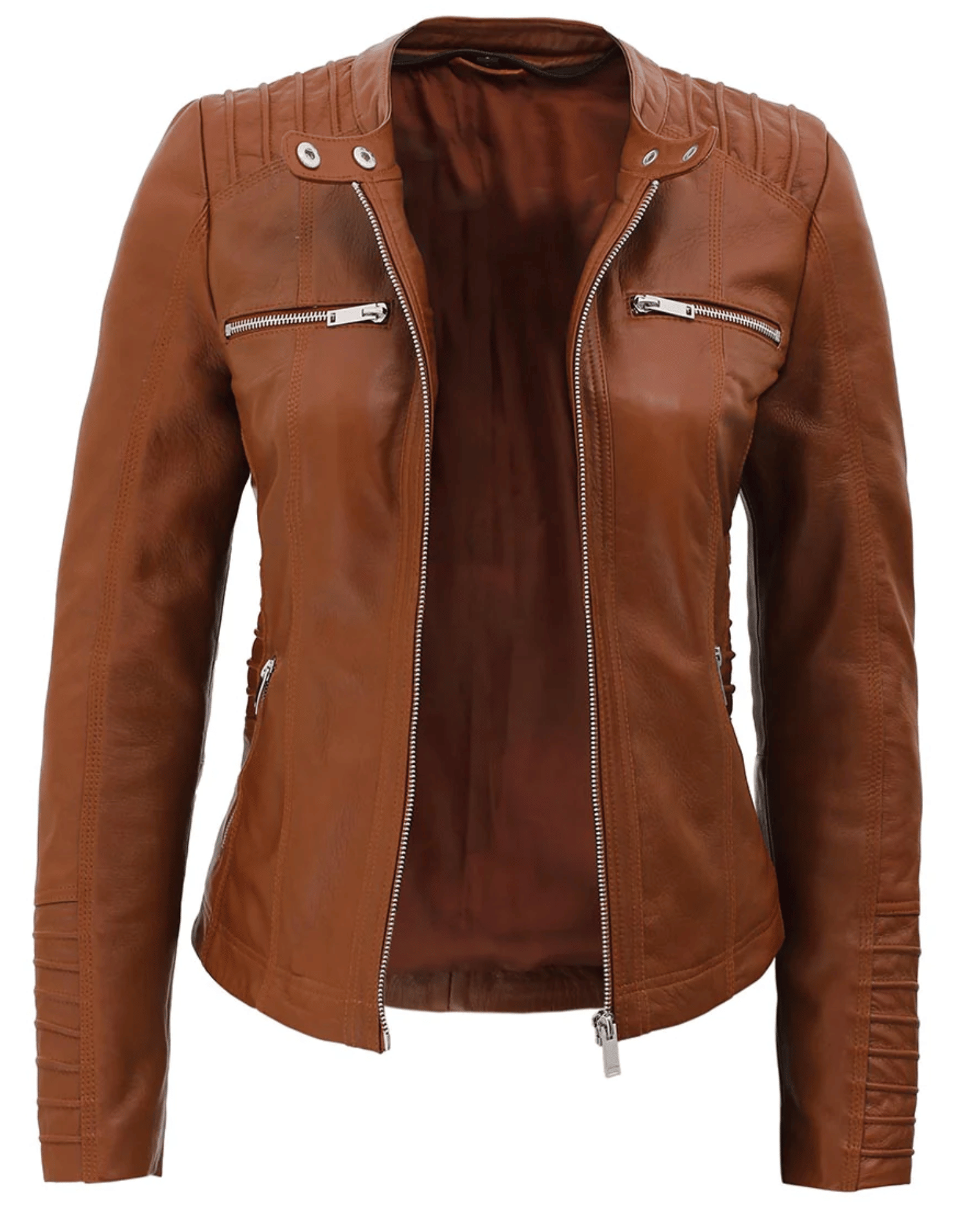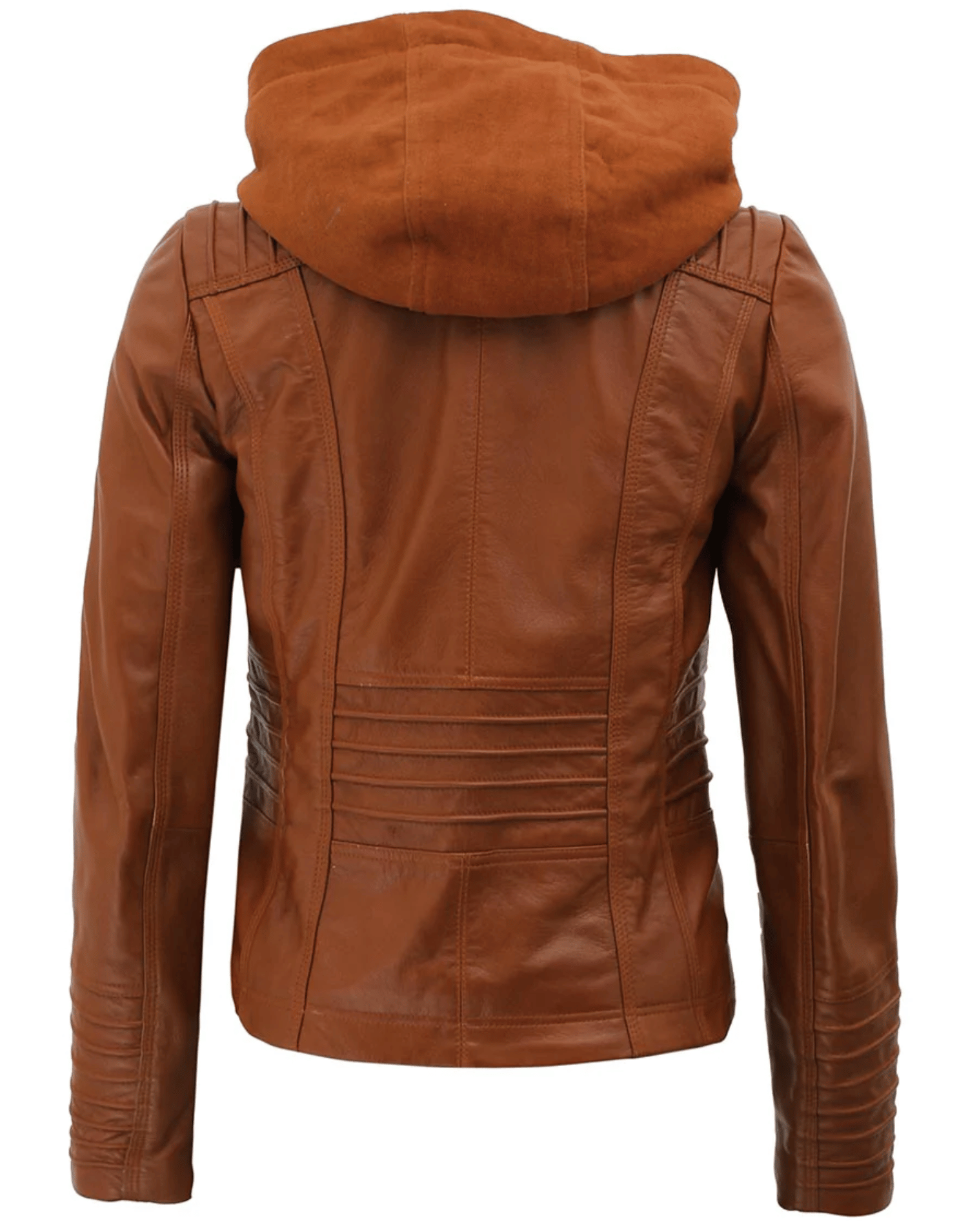 Womens Brown Racer Leather Jacket With Removable Hood