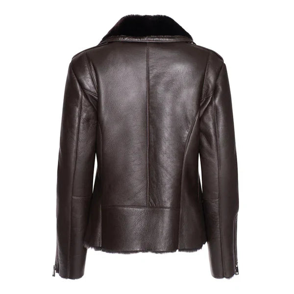 Women’s Brown Shearling Straight Moto Leather Jacket