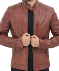 Women’s Maroon Shirt Collar Leather Jacket